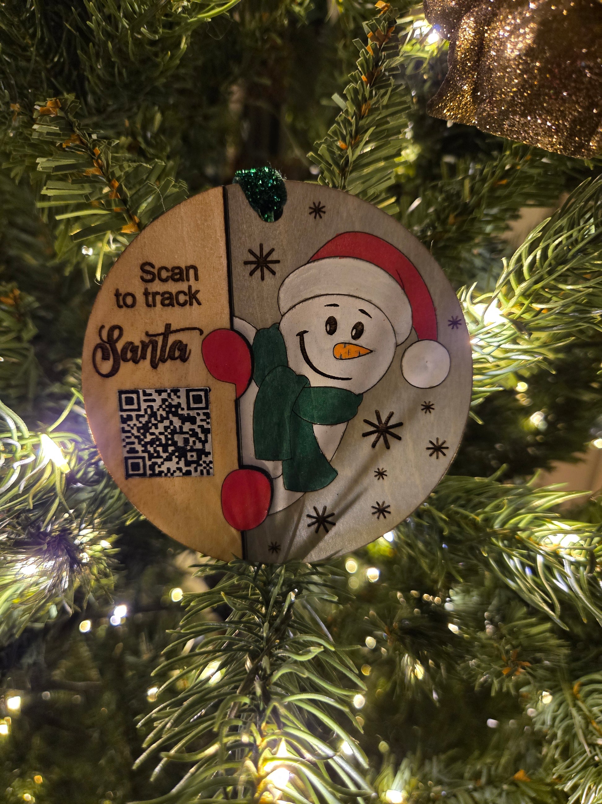 Bring holiday cheer with the Snowman Santa Tracker Ornament! Handcrafted and hand-painted with care, this charming snowman features a fun QR code that, when scanned, takes you directly to Norad’s Santa Tracker website. Perfect for adding a playful touch to your tree and keeping the magic of Santa’s journey alive for kids and adults alike.